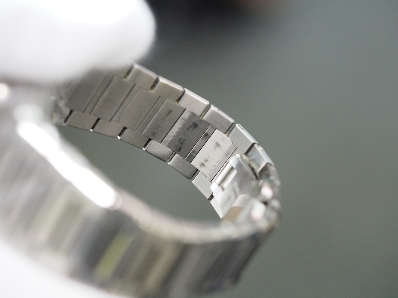 [Belt/Band] There are some small scratches. There are some scratches on the back of the bracelet (near the clasp), but this is normal for a used titanium item.