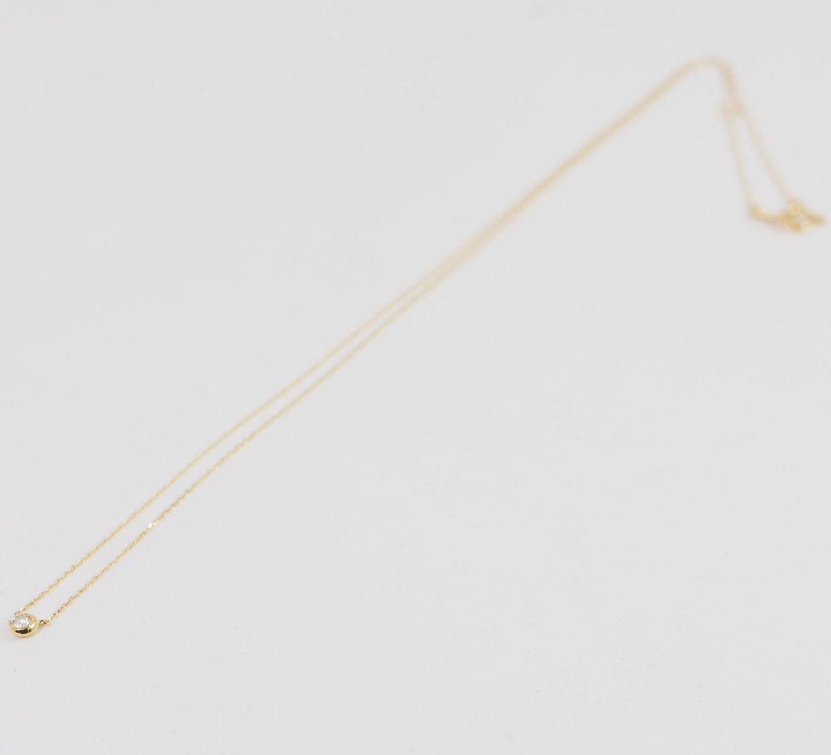 This is an elegant necklace with a "Moon Setting" in which diamonds are set in the shape of the moon. The streamlined finish emphasizes the shine of the base metal and the shine of the diamonds, giving an elegant look to your chest. This is a masterpiece that can be used as a standard item for a long time.