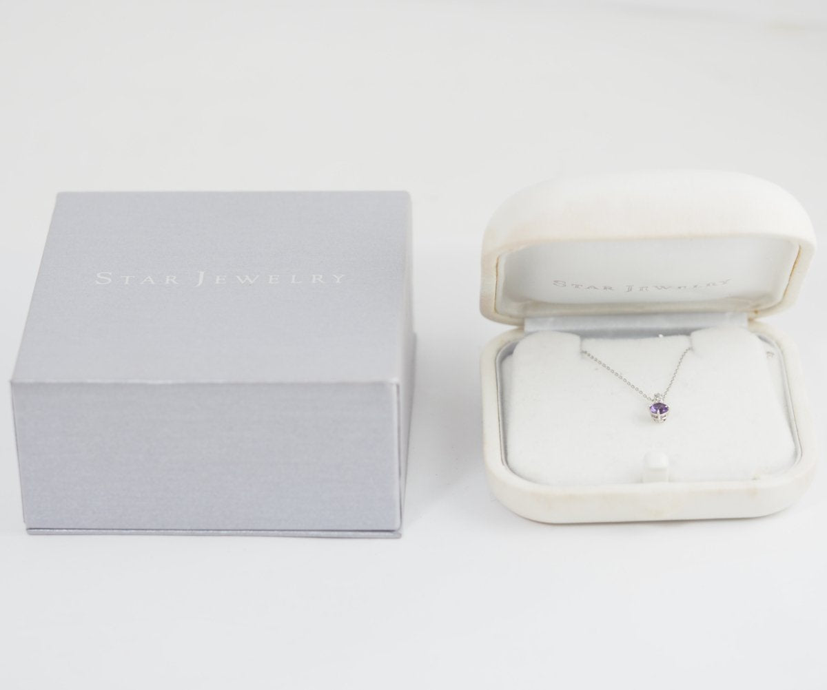 Star Jewelry's original “Crossing Star Setting” features a mysterious amethyst stone seat with a crossing star motif. The stone is set so that the nails are not visible from the front, highlighting the presence of the amethyst itself. The luxurious sparkle of diamonds that gently nestle against the elegant platinum and amethyst will add elegance to your décolletage.