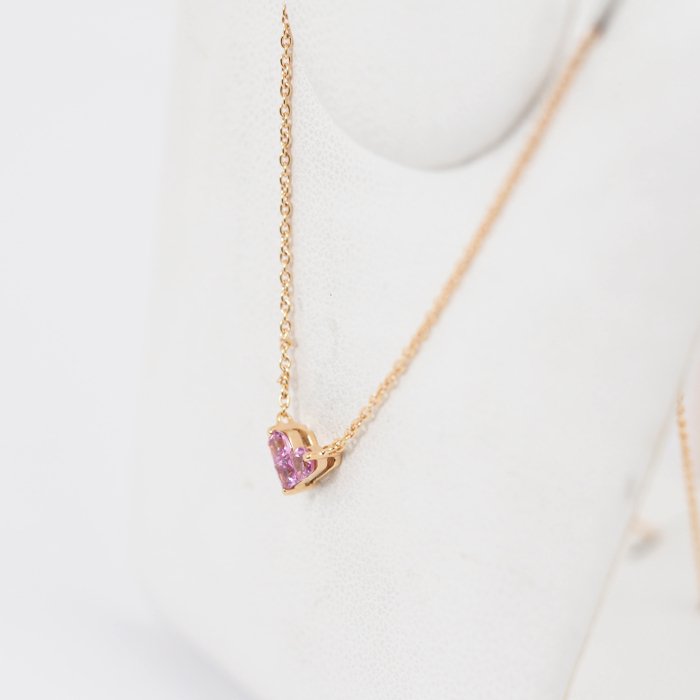 Star Jewelry's signature necklace from the popular "Mysterious Heart" series. The main point is the heart shaped in an original setting, which is finished with three stones without using nails for the outline. The pale and pretty pink sapphire heart and 18K pink gold that blends well with your skin enhances your femininity.