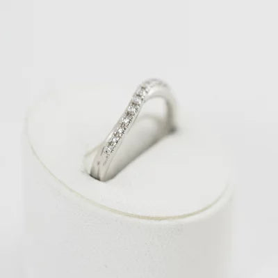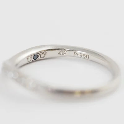 This elegant ring features a wavy line that gently wraps around your finger and sparkles with diamonds. The inside of the ring is adorned with a special blue diamond engraving that is exclusive to the Disney collection. The dignified sparkle of platinum adds elegance to your hands.