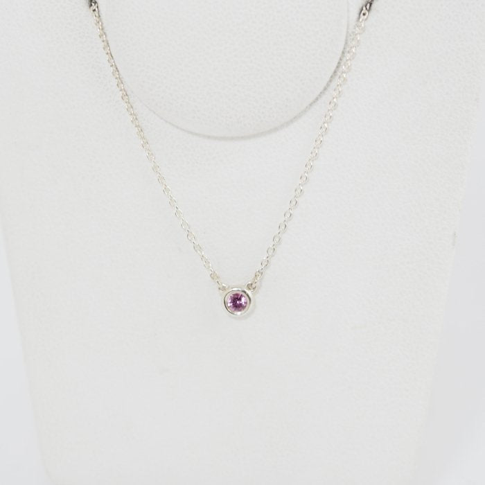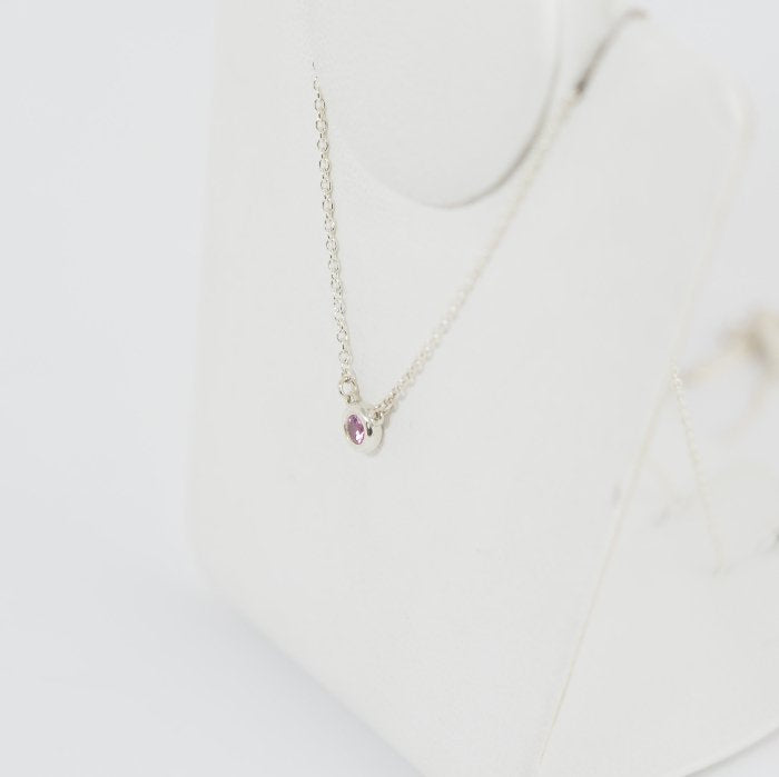 A cute pendant made of elegant sterling silver with a round pink sapphire. The simple design highlights the shine of the pink sapphire and makes your décolleté look delicate and feminine.