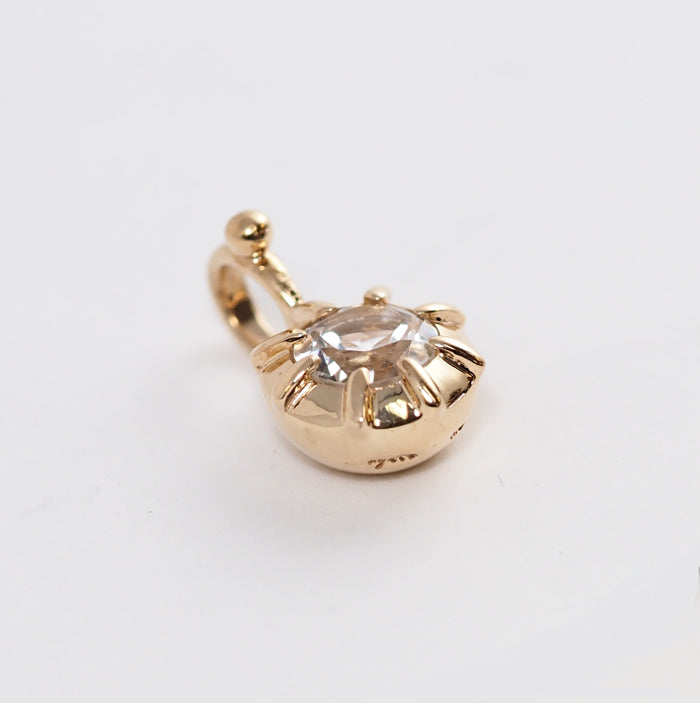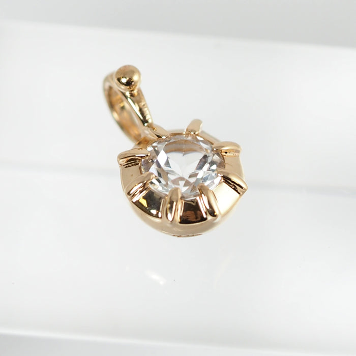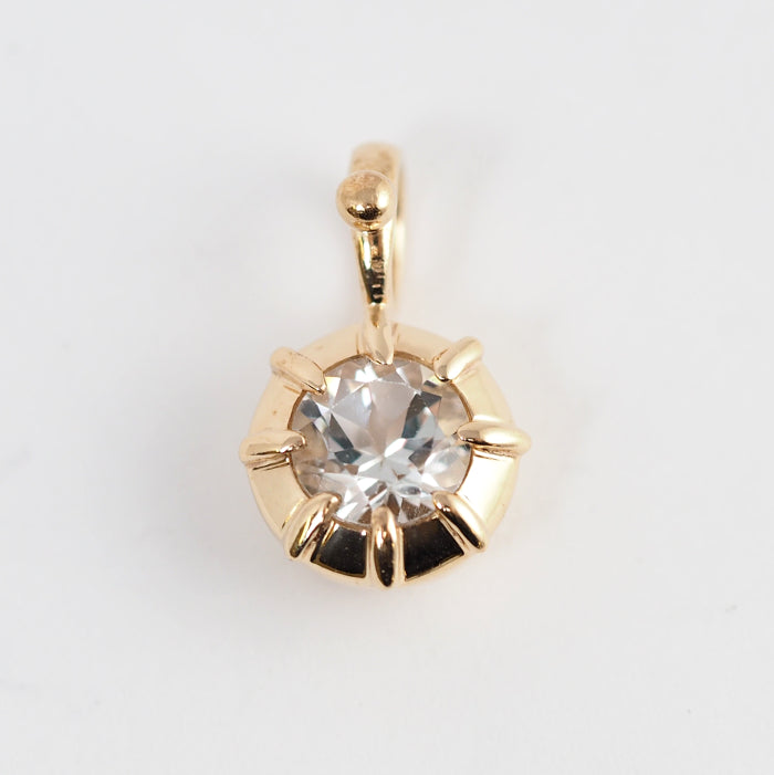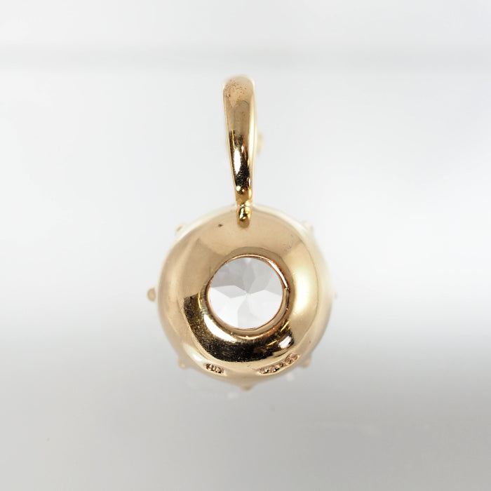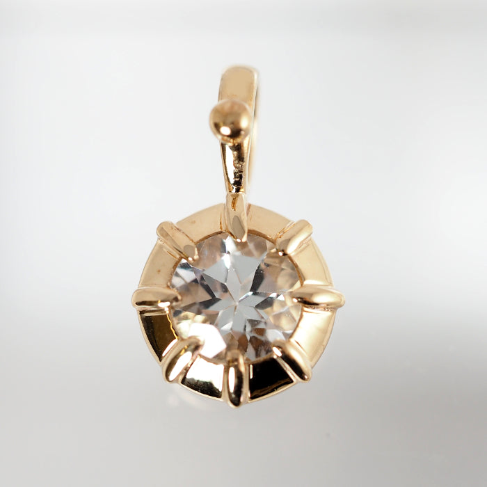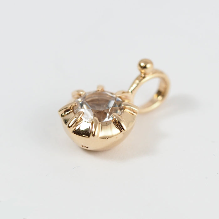 This pendant top features a fresh clear stone wrapped in gorgeous yellow gold. The sheer clear stone blends in nicely with the skin, and can be used elegantly even with a bold design.