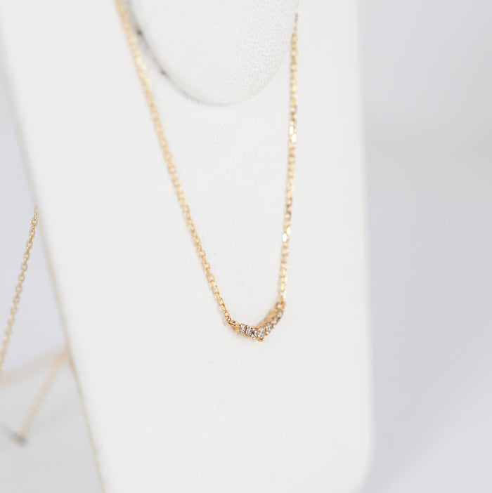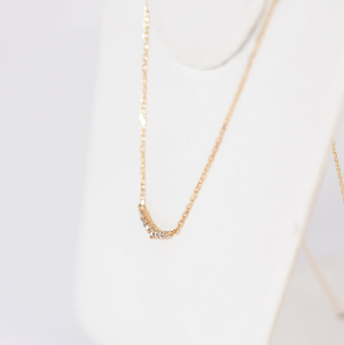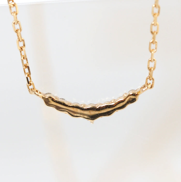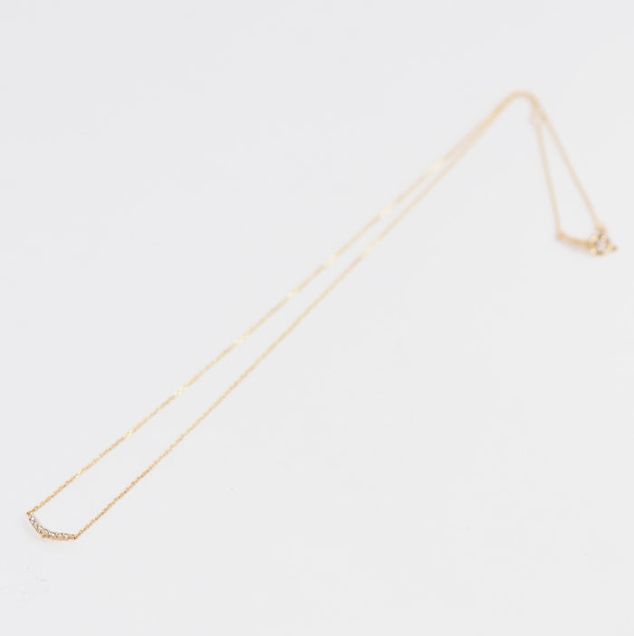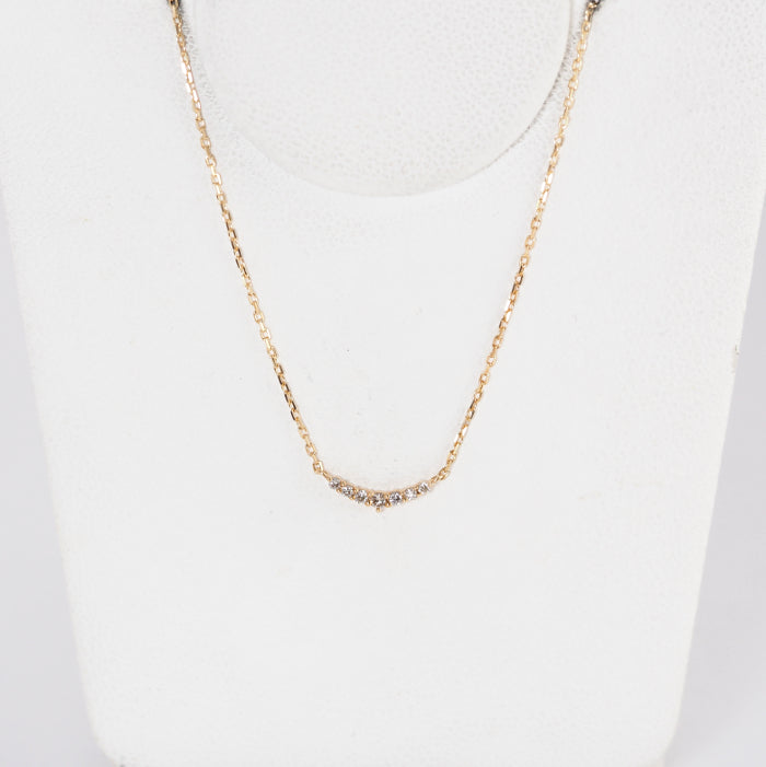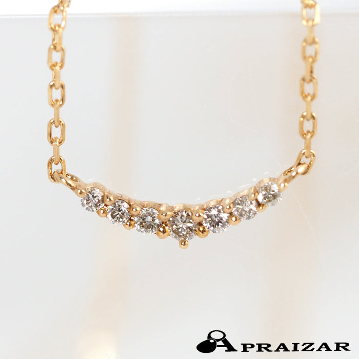 Agate's classic and popular crescent moon diamond necklace is simple to wear. While delicate, the diamonds increase in size towards the center, allowing the light to shine as if it is centered, enhancing femininity. The design is suitable for all ages and is recommended for everyday wear.