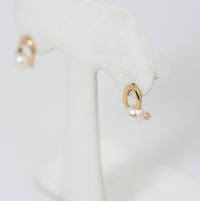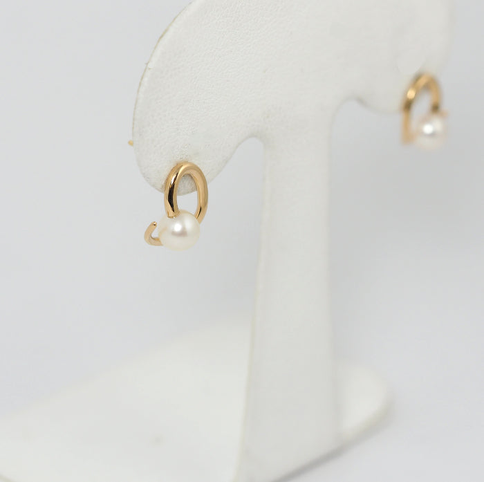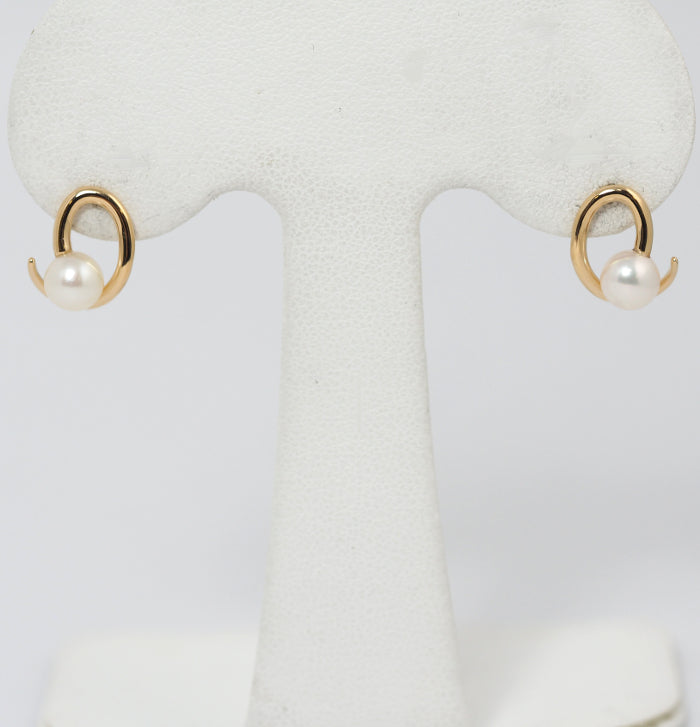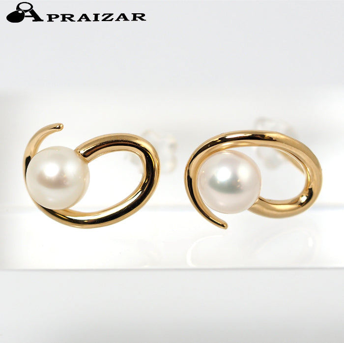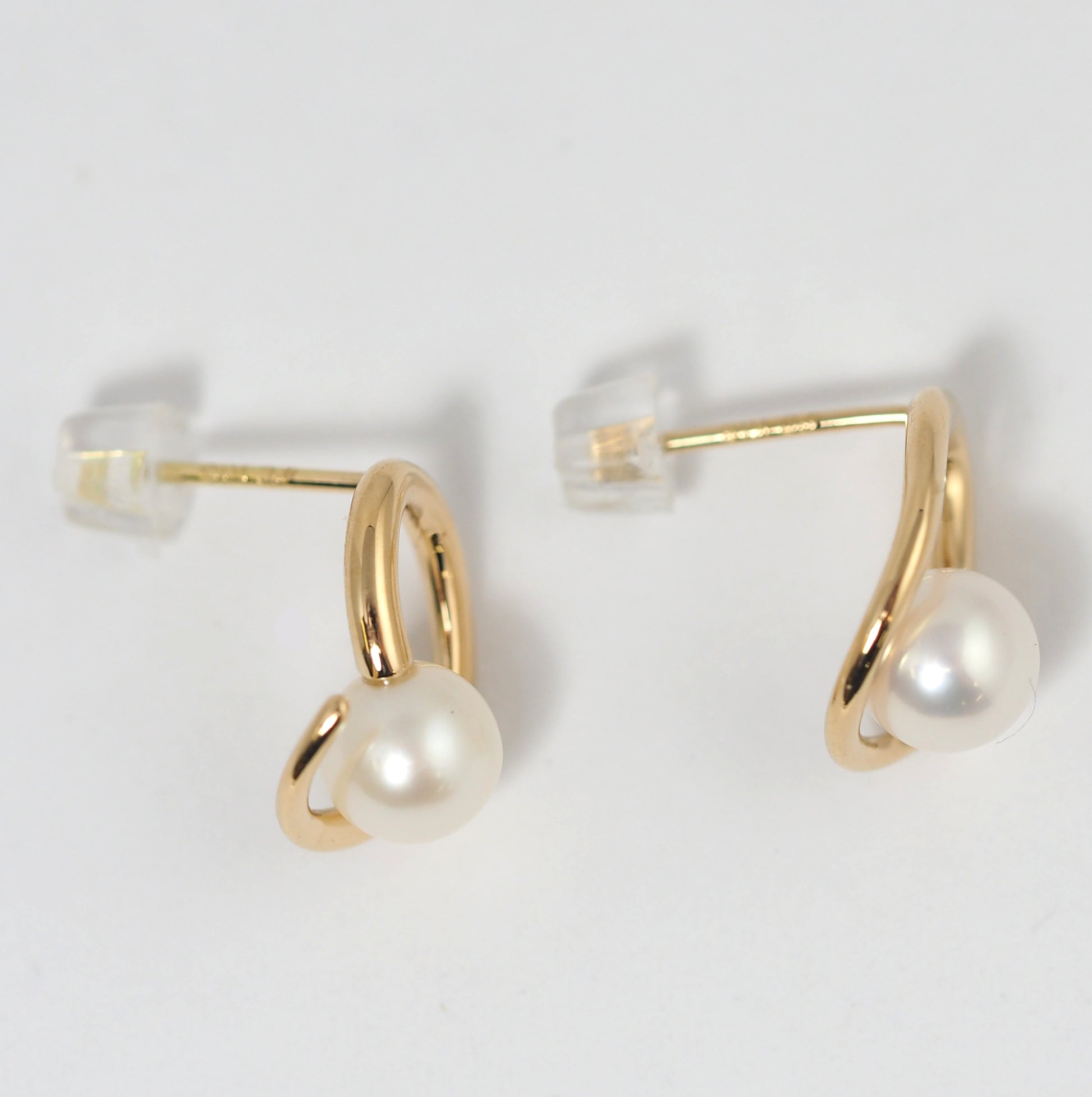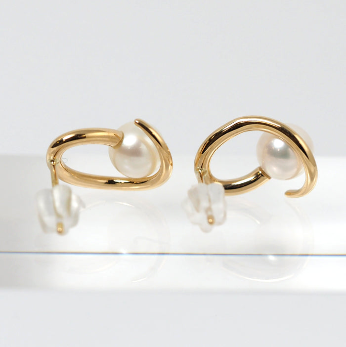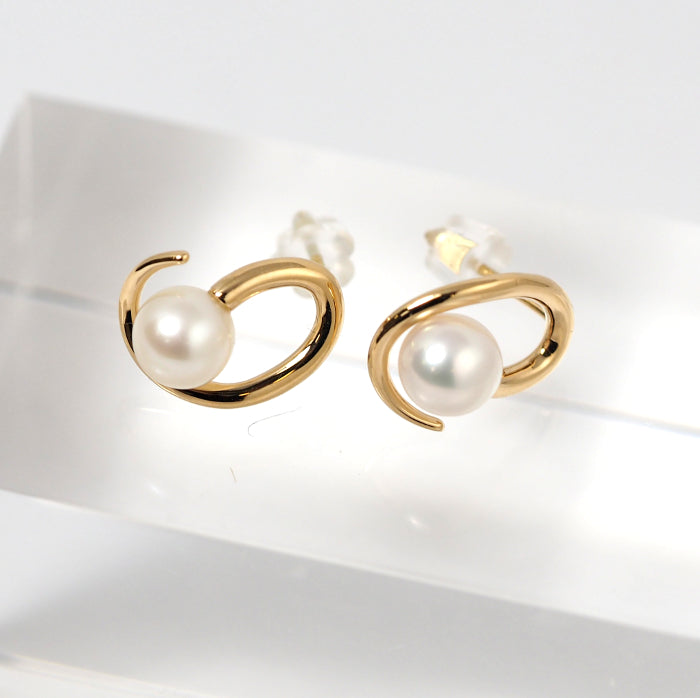 These sophisticated earrings feature pearls wrapped in modern lines reminiscent of flowing water. The moderate size and three-dimensional design make them easy to coordinate with other items and create an elegant look for your ears.