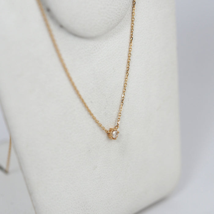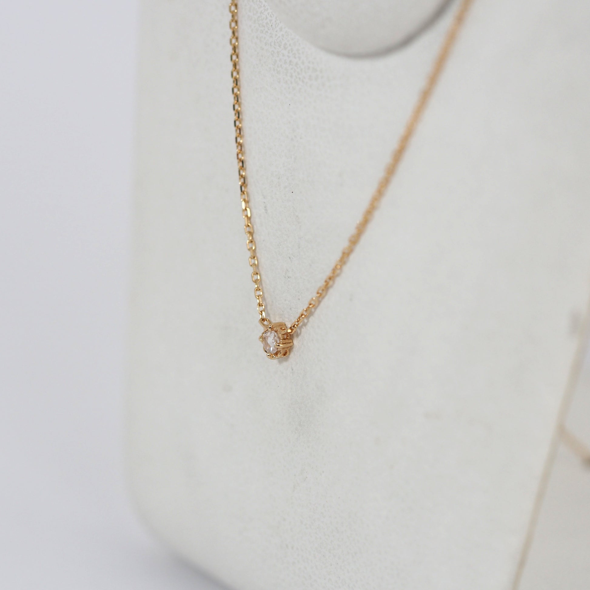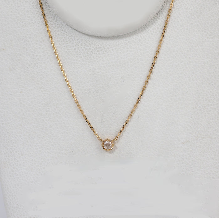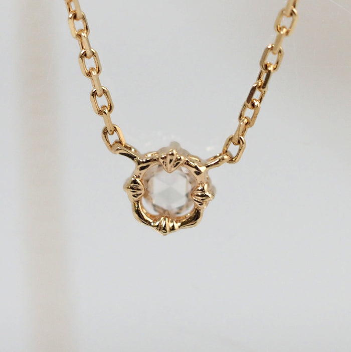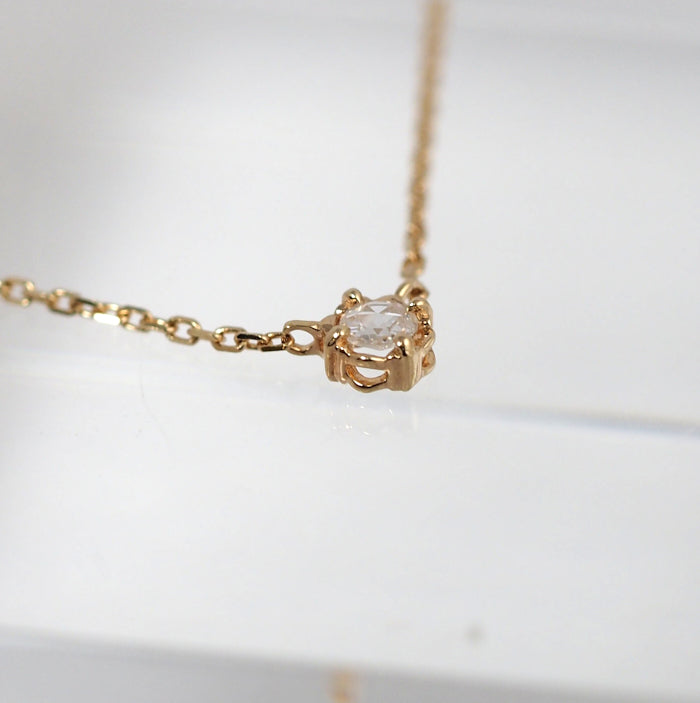 This necklace allows you to fully enjoy the charm of a single diamond with a translucent, fresh rose cut. Its delicate and classic appearance enhances femininity.