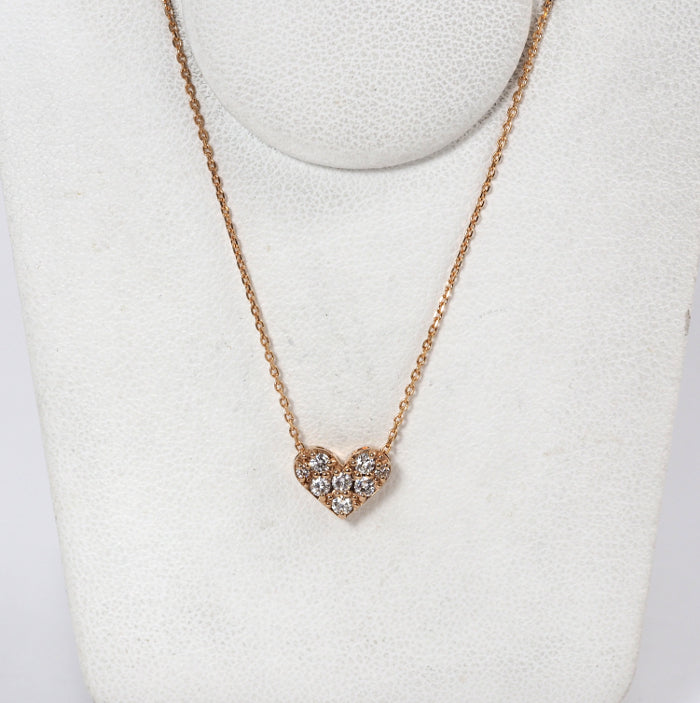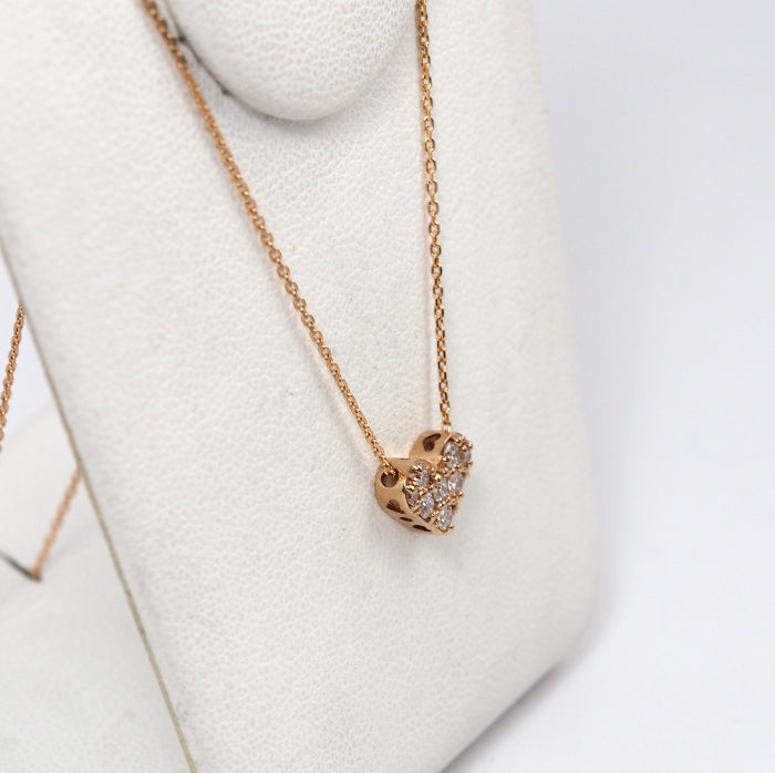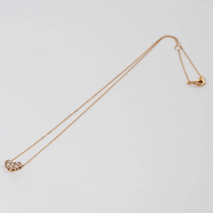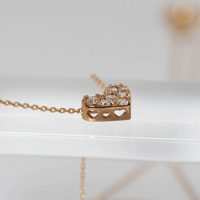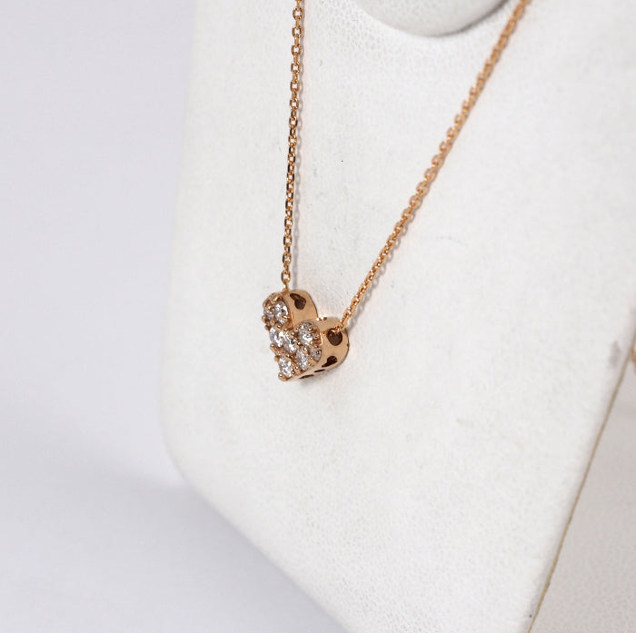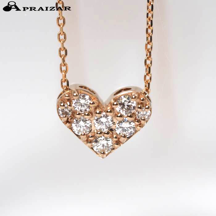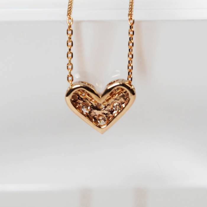 This necklace features a pink gold heart motif that blends well with the skin and is lavishly adorned with diamonds. The moderate volume and Ponte Vecchio-style heart design create a mature and cute look for your ears without being too sweet.
