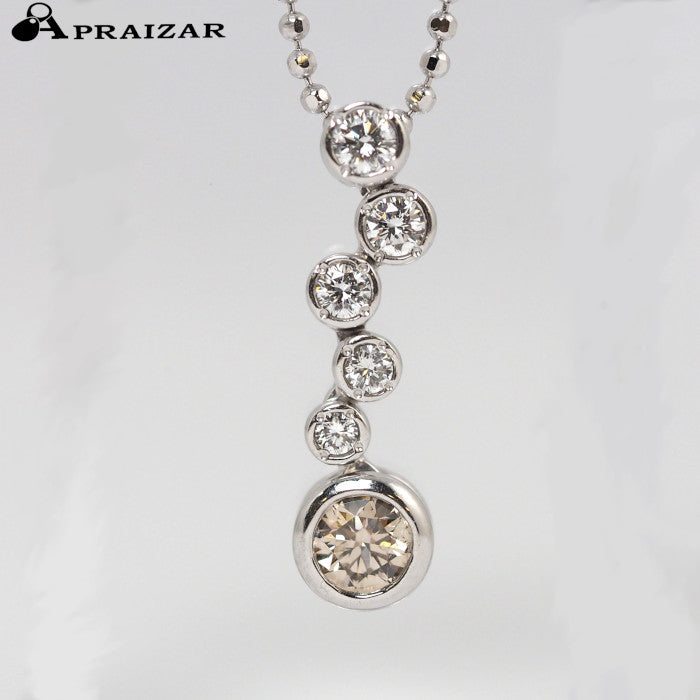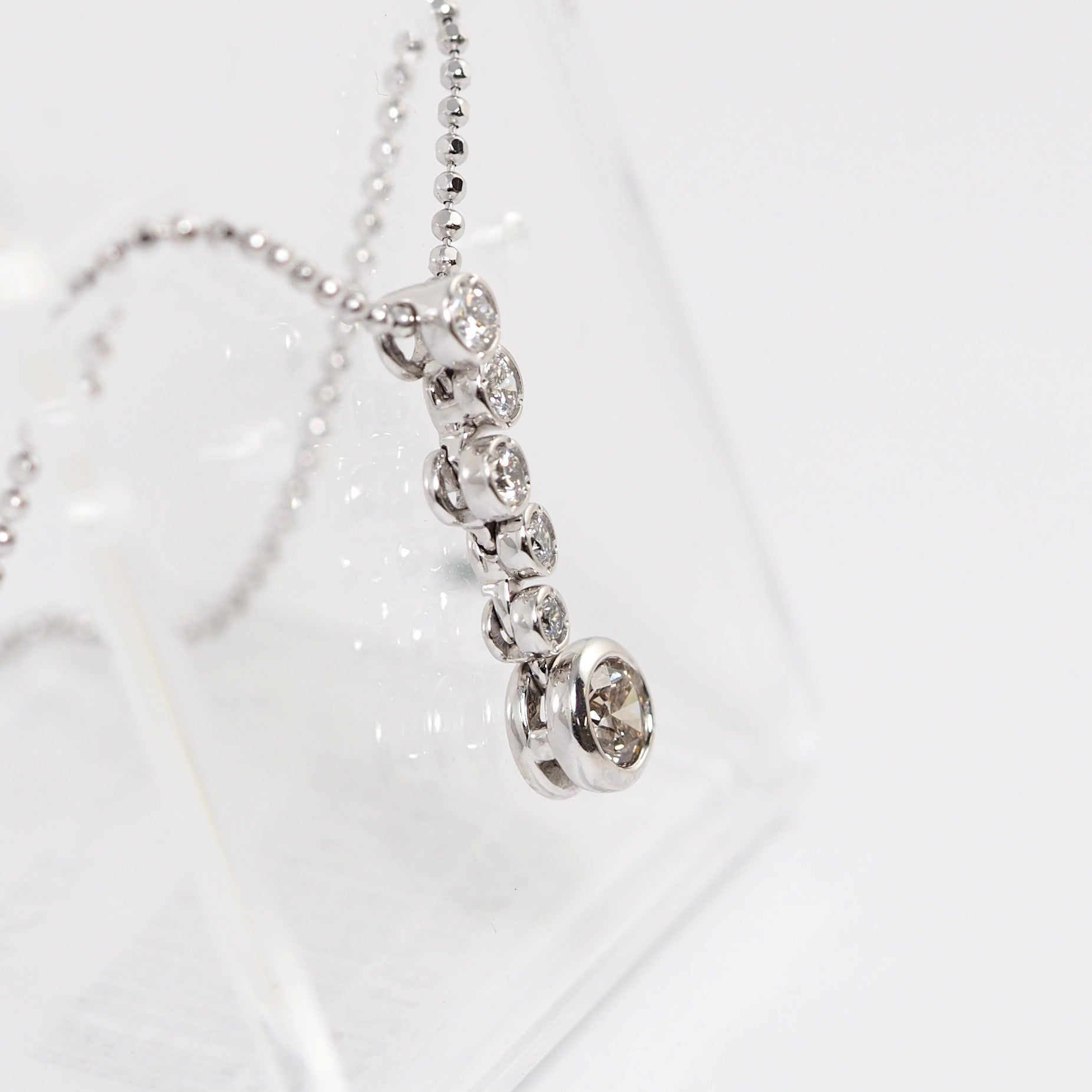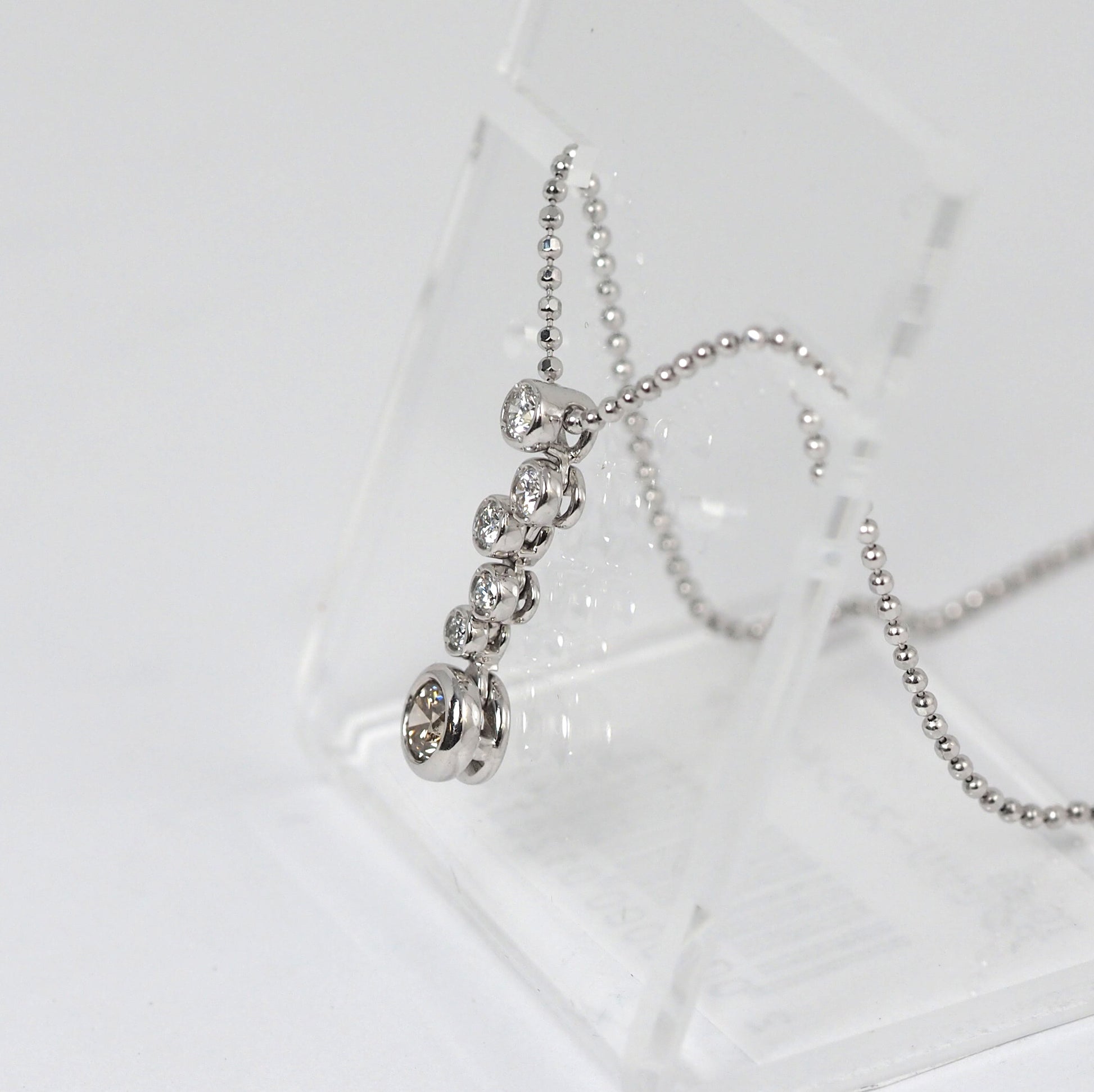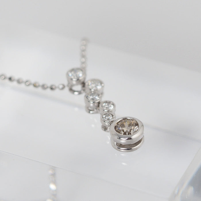 This bright and bouncy necklace features bezel-set brown diamonds that dance rhythmically. The craftsmanship of an artisan who is an expert in brown diamonds shines through, creating a striking presence that adds elegance to the chest. The chain length can be adjusted using the slide ball.