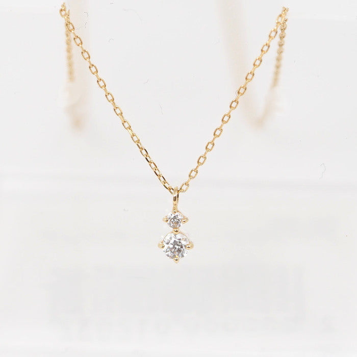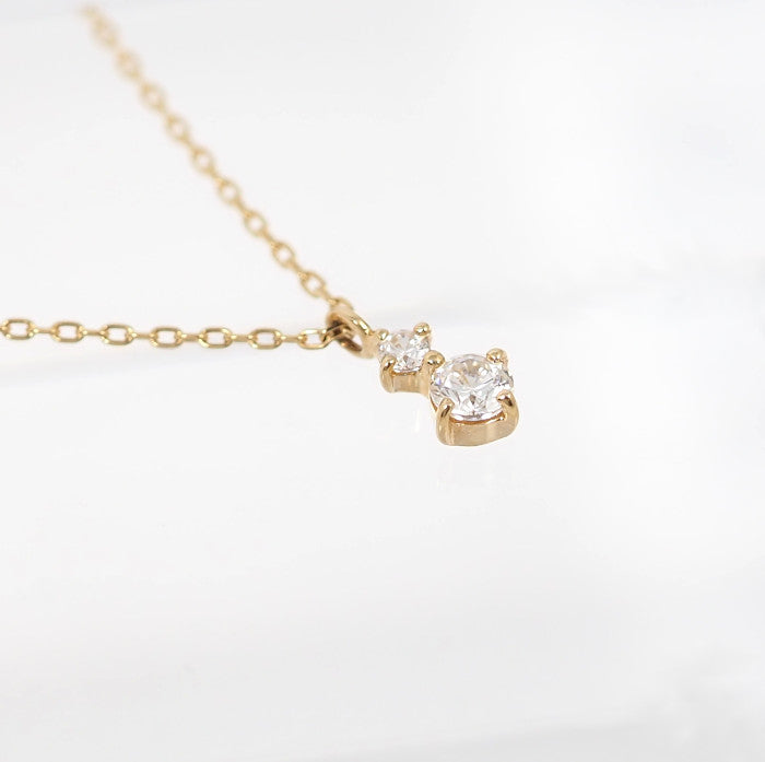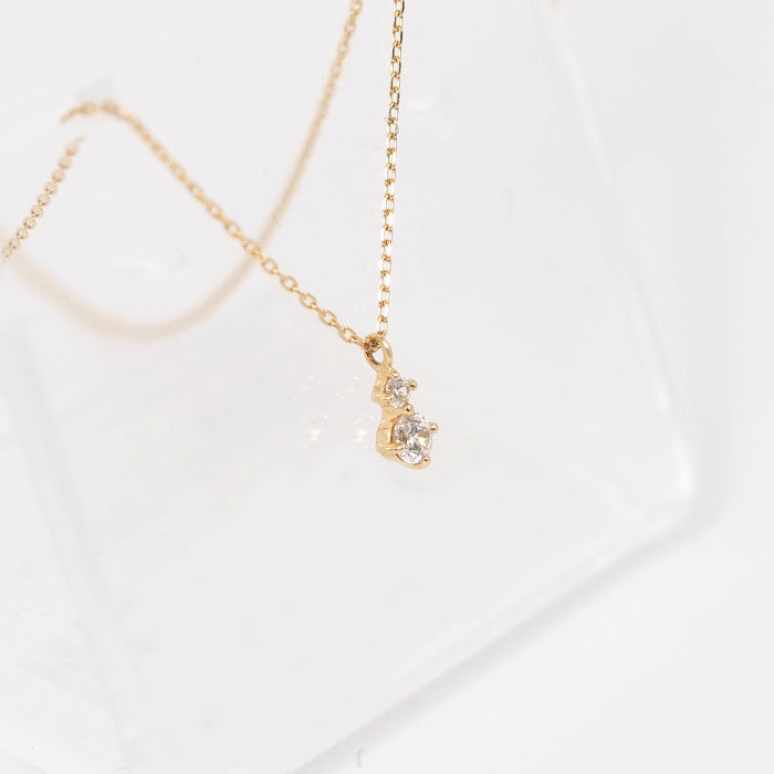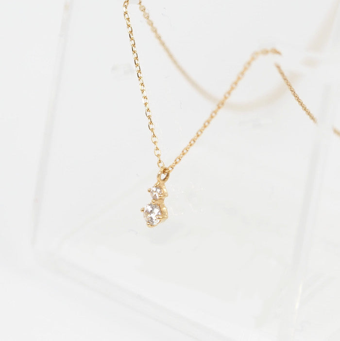 This sophisticated necklace features two sparkling clear stones nestled together. Its simple yet subtle presence enhances femininity.