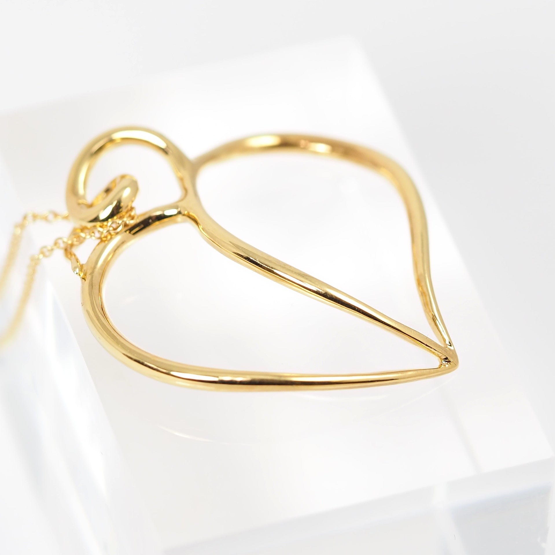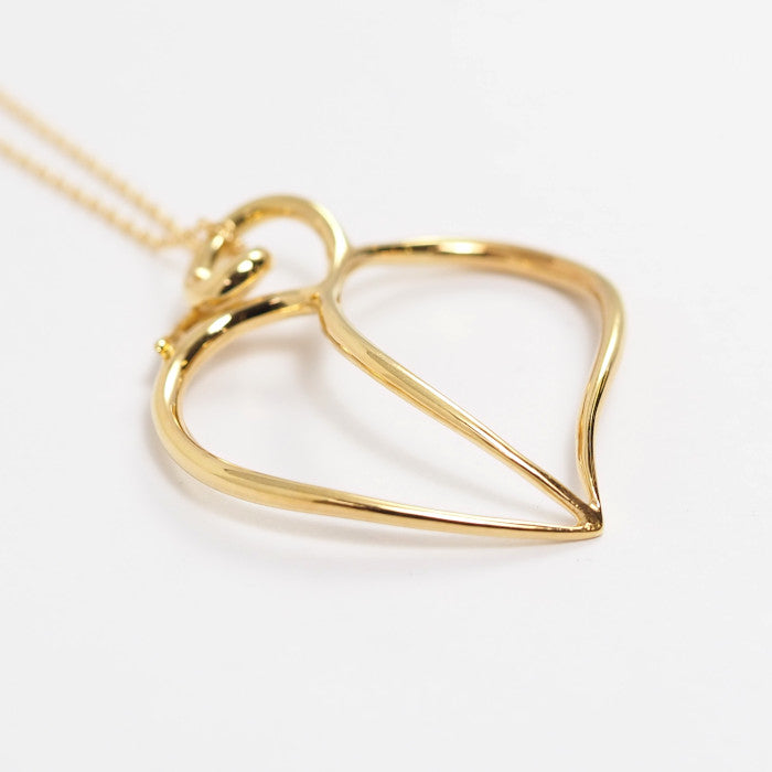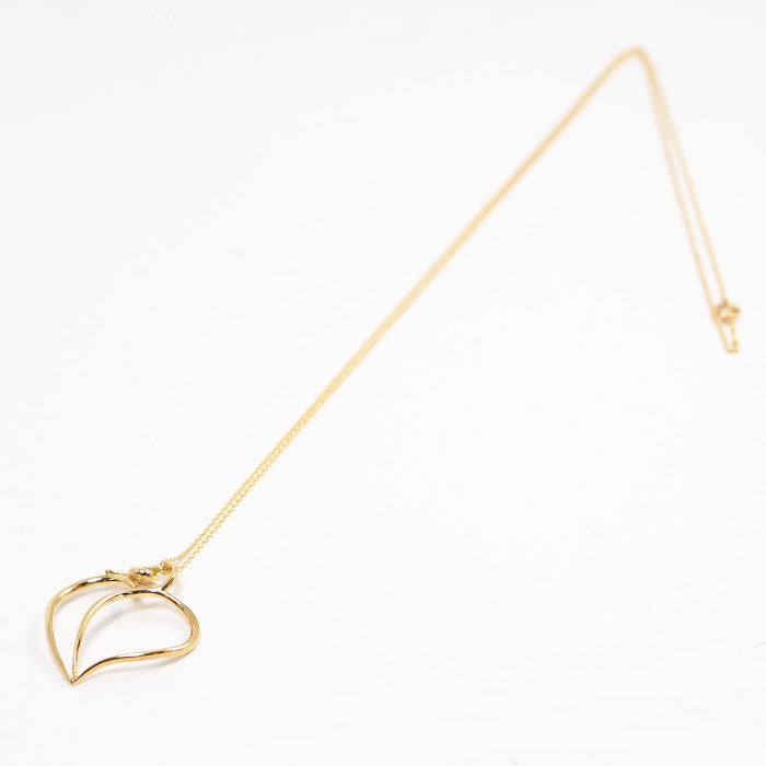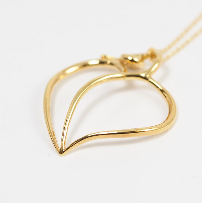 This necklace features an impressive heart leaf design with three-dimensional curves. It is large in size, yet light. The yellow gold adds a touch of glamour.