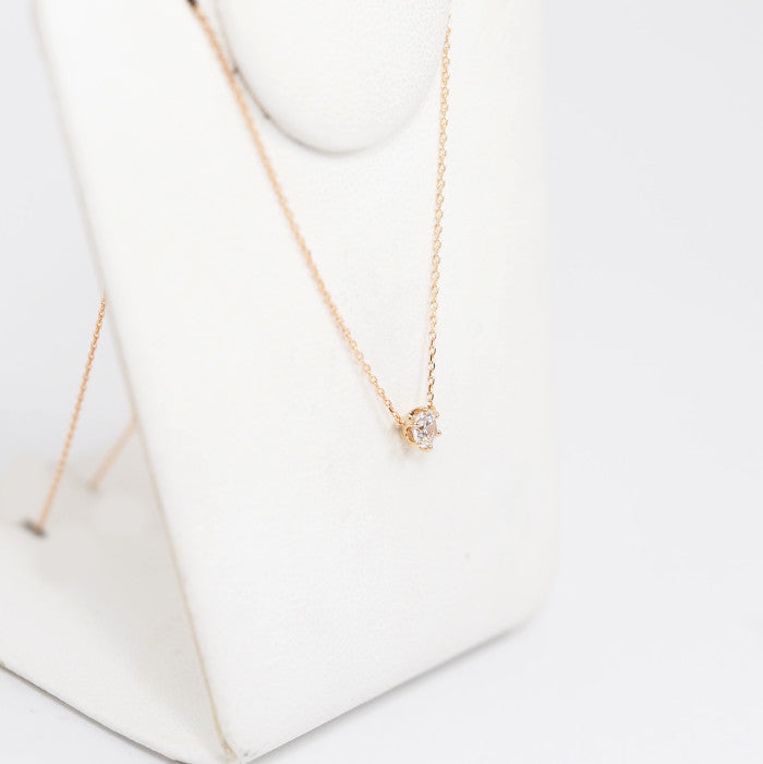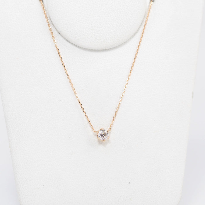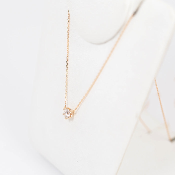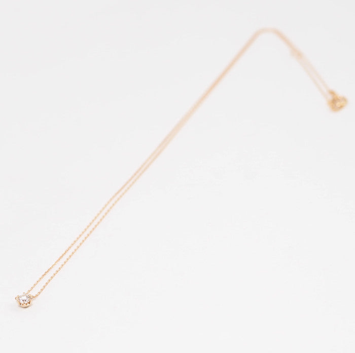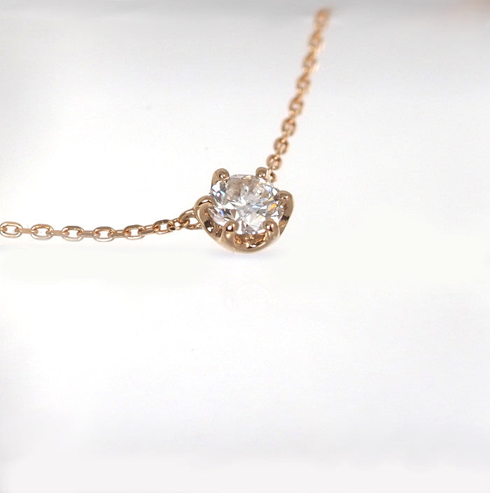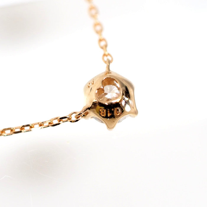 This single diamond necklace is the pinnacle of simple beauty. The pink gold, which blends well with the skin, creates a soft atmosphere. The subdued hue gives a gentle impression. It can be worn for everyday styling and coordinates with a wide range of other jewelry, making it a piece you can cherish for many years to come.