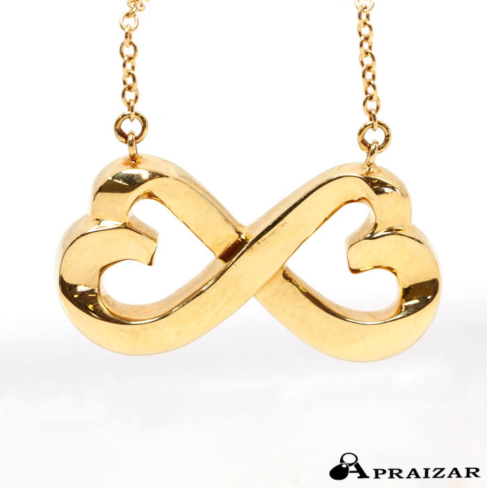 パロマ・ピカソのシグネチャーデザインであるハートがダブルでデザインされたイエローゴールドがリッチに煌めくネックレスです。生き生きとした愛のかたちや楽しさを表現したハートが胸元を華やかに演出してくれます。