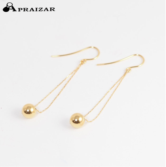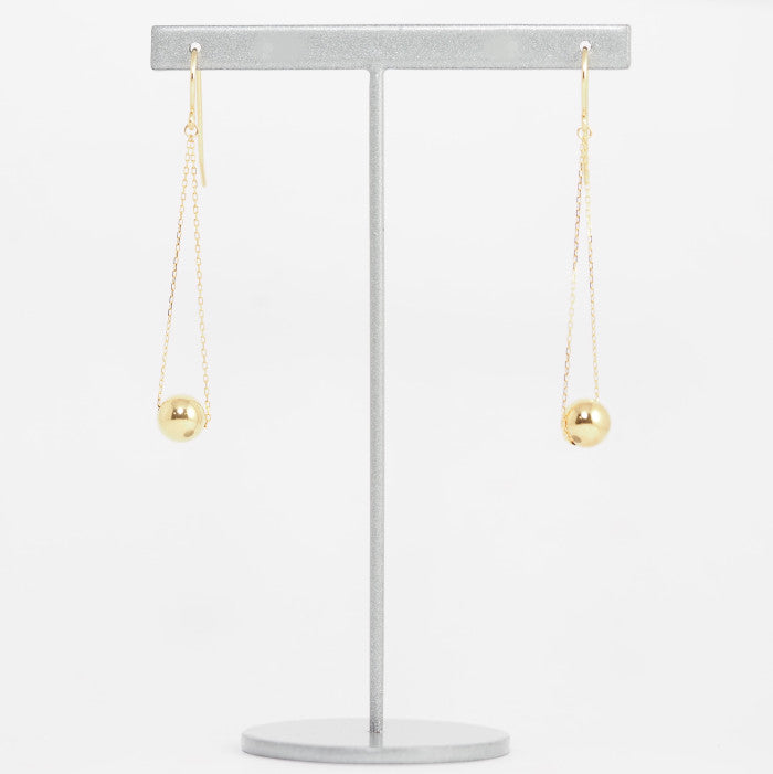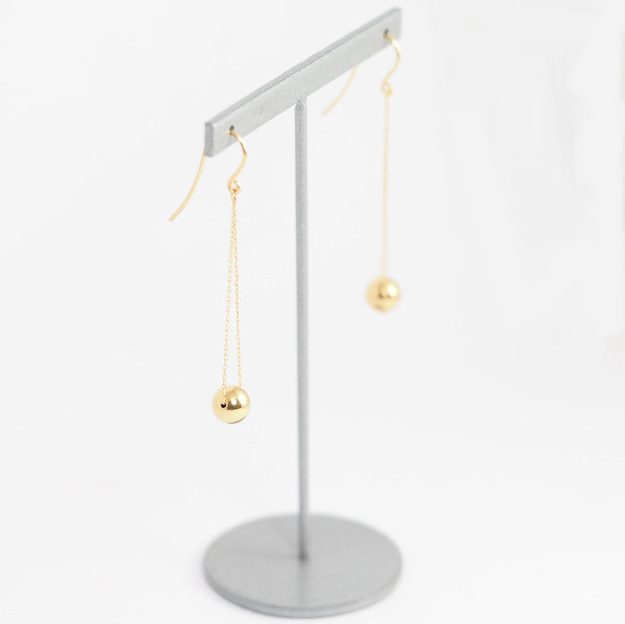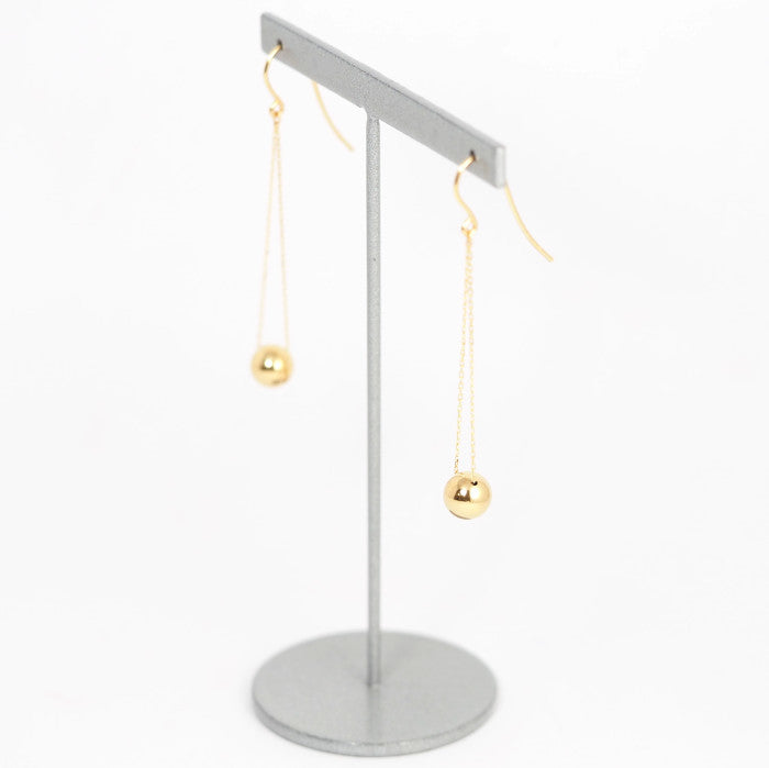チェーンの先でボールモチーフが揺らめくシンプルな中に大人の遊び心が光るピアスです。鏡面に仕上げられたイエローゴールドの上質な輝きは、横顔に品のある華やかな印象を添えます。