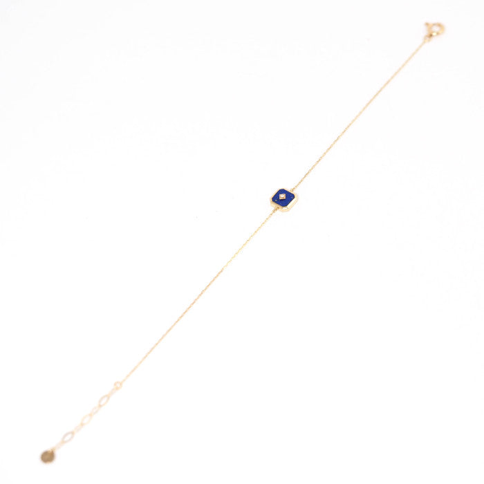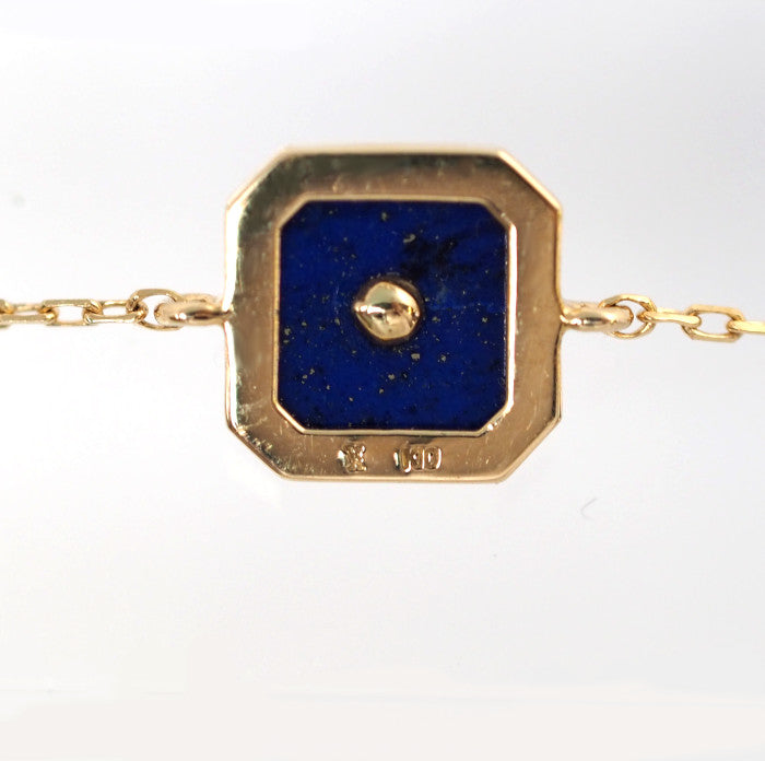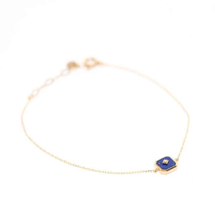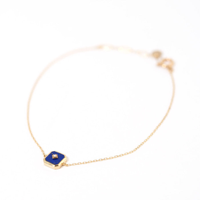 夜空のような深いブルーが美しいラピスラズリが印象的なブレスレット。華やかなイエローゴールドとラピスラズリのコントラストにダイヤが煌めきを添え、お手元をエレガントに演出してくれます。