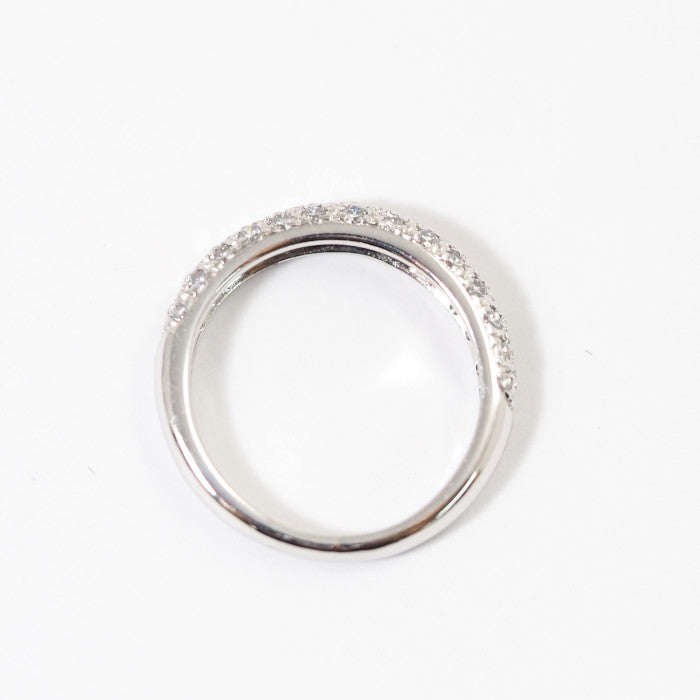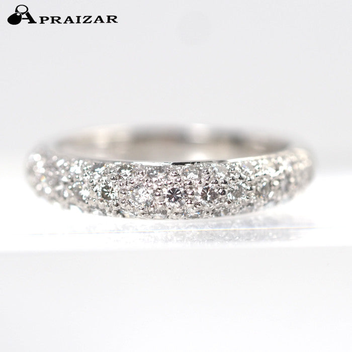 パヴェセッティングが美しいハーフエタニティリング。清楚な印象が魅力のホワイトゴールドは、ダイヤモンドの白く美しい輝きをより一層引き立てるカラー。エレガントな雰囲気を演出したい方にもおすすめです。